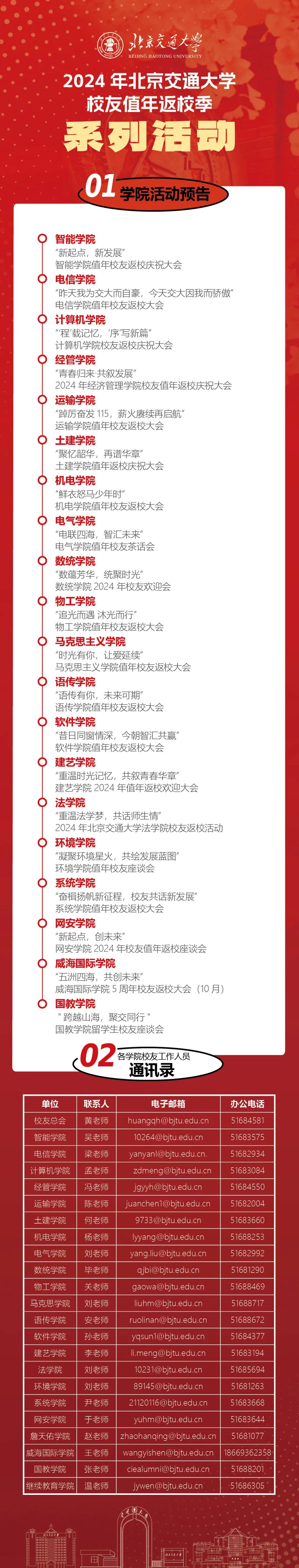 9:30-10:20 | 2024年北京交通大学校友值年返校大会 | 西操场 |