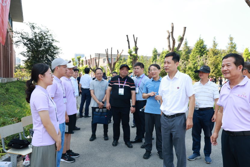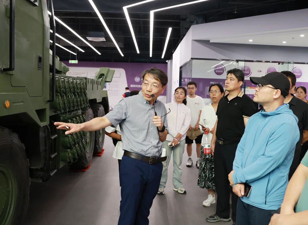 5日下午,付梦印、李强及相关职能部门负责人、部分学科教师在南京理工大学国防科技创新与实践基地现场开讲,为新生家长介绍学校弘扬“哈军工”光荣传统,在推动国家国防科技发展进程中做出的重要贡献,并实地体验了武器系统全链条“知行合一”沉浸式实践教学空间。