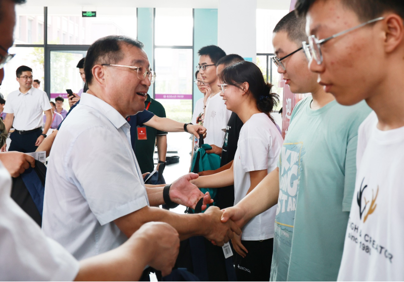 9月4日下午,校长付梦印院士、江阴市副市长金丹菁、副校长李强和相关部门负责同志来到迎新现场,看望报到的2024级新同学,慰问迎新工作人员。在各书院,付梦印、金丹菁、李强等与新生亲切交谈,为他们发放入学礼物。付梦印勉励新生要赓续南理工的红色基因,树立远大的人生理想,努力学习专业知识,为将来报效祖国贡献青春和力量。