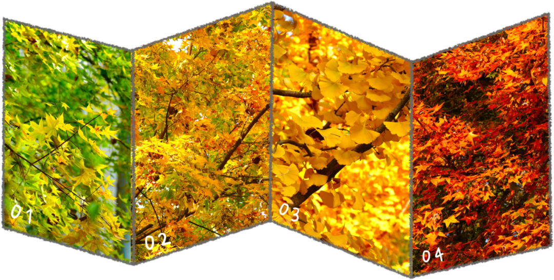 “哇,叶子像星星!”看到这画面时无厘头的想法一霎那间出现在脑海。雨后的空气混合着泥土的潮湿,水珠乌溜溜的滚过每一片叶子。那阳光染过的红,烘焙机里刚刚烤过的点心表面的橙,蛋烧味流心月饼里淌出来的黄,松松散散的躺在绿色的草地上,在月光里一闪一闪的亮着。绚丽的色彩总是容易让人联想到美好的事物,比如此刻,我悄悄向这些“流星”许愿,下一个秋天还要遇见这样的景色!