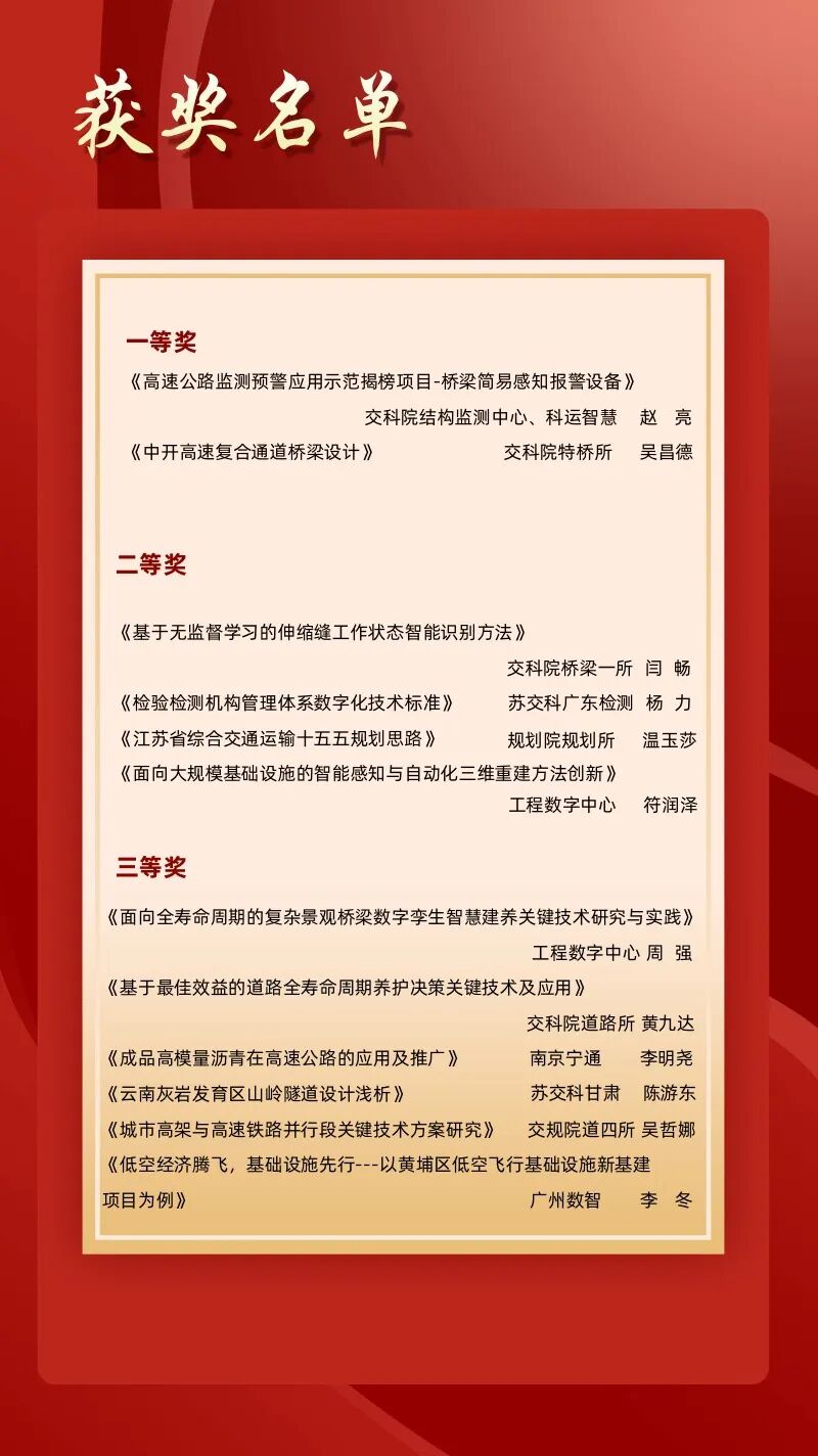 创新是苏交科人的基因,是组织发展的新质生产力,集团争业务、抓创新、促学习,形成了一批创新技术成果,经业务单元积极申报、集团学术委员会评审,选出2024年度十大创新技术并在会上进行发布。