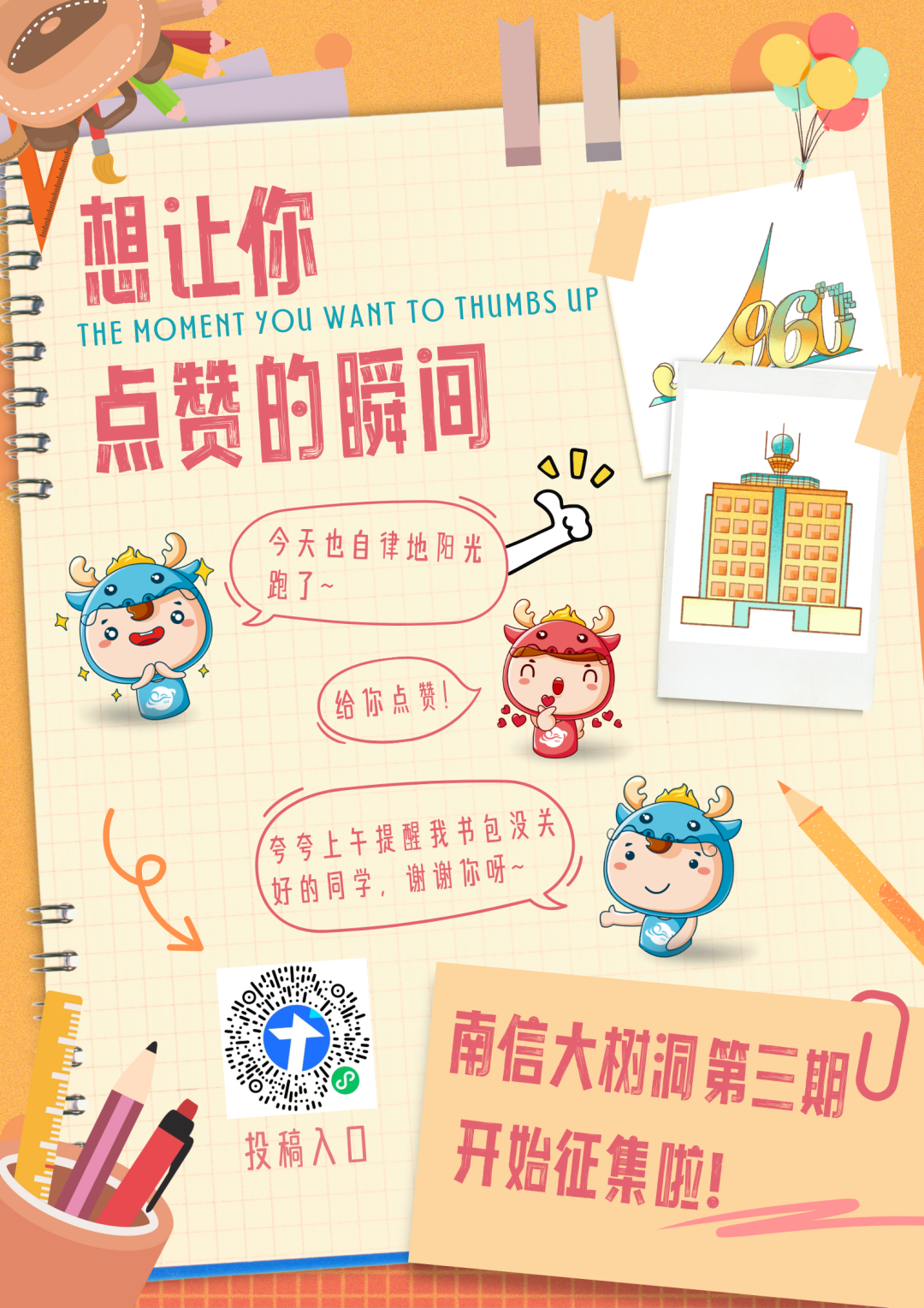 “打造多彩校园文化阵地,营造浸润式育人氛围。融媒体矩阵覆盖校报、新闻网、广播台、官方微信公众号、微博、抖音、B站、微博等一众媒体平台,为我们提供了丰富的获取讯息的平台;校园文化长廊、宣传栏、道旗等处处彰显着信大风采。在南信大,获取学习生活中的‘情报’如此简单!”