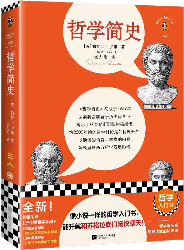 哲学家罗素的《哲学简史》是一部通俗哲学著作,该书在其鸿篇巨制《西方哲学史》的基础上勾勒新意,编撰而成,被视为经典的哲学史入门书。罗素在书中不仅阐述了西方哲学发展的前因后果,还广泛涉及了历史、科学、经济、政治等多方面的内容,揭示了哲学家们试图说些什么以及哲学讨论如何得以展开。罗素致力于哲学的大众化、普及化,该书一改之前哲学书籍的艰深晦涩,以通俗易懂的文笔,结合丰富的历史、科学、文化内容加以叙述,使枯燥的哲学变得像小说一样生动耐读。