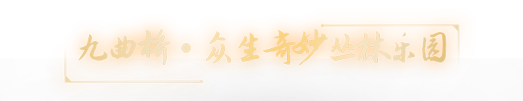 巨树环绕的密林深处,植物错落生长,藤蔓环绕其中,形成了天然的丛林乐园。山海小灵兽藏于植物群落,飞鼠、豪彘、畏兽...活灵活现地立于九曲桥上,仿佛穿越时空,进入神州冥海的奇幻世界。