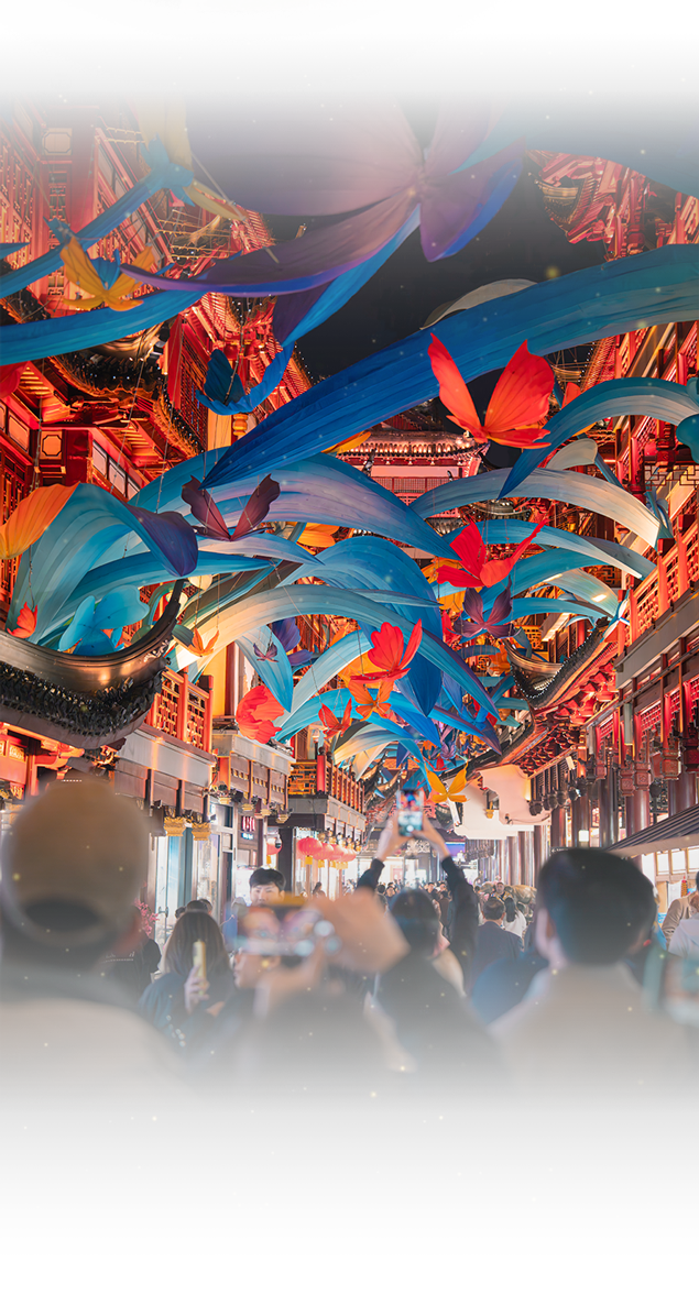 豫园外围同样充满新年氛围,文昌街、旧校场路、上海老饭店等地标以丛林感灯组点亮年味,将丛林感设计融合传统建筑群,邀请大家共同度过一个热闹有趣又意义非凡的新年。