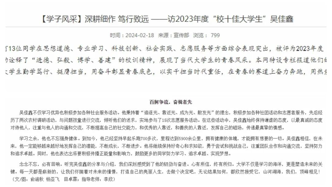 根据学校重点工作和重大事件,开展采访活动,撰写专访稿件等。根据年度宣传主题和热点事件,为学校新媒体平台供应优质稿件。