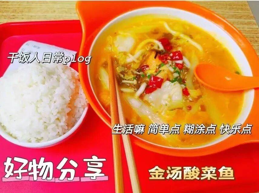 上完一上午的课,我总是会饥肠辘辘地奔赴食堂,点一份金汤酸菜鱼。酸菜鱼入口,味蕾被刺激,一瞬间,我感觉“温暖”起来了!满足感在心底慢慢荡漾……这一刻,我是幸福的。