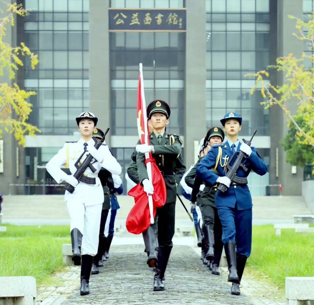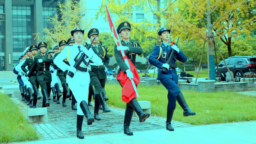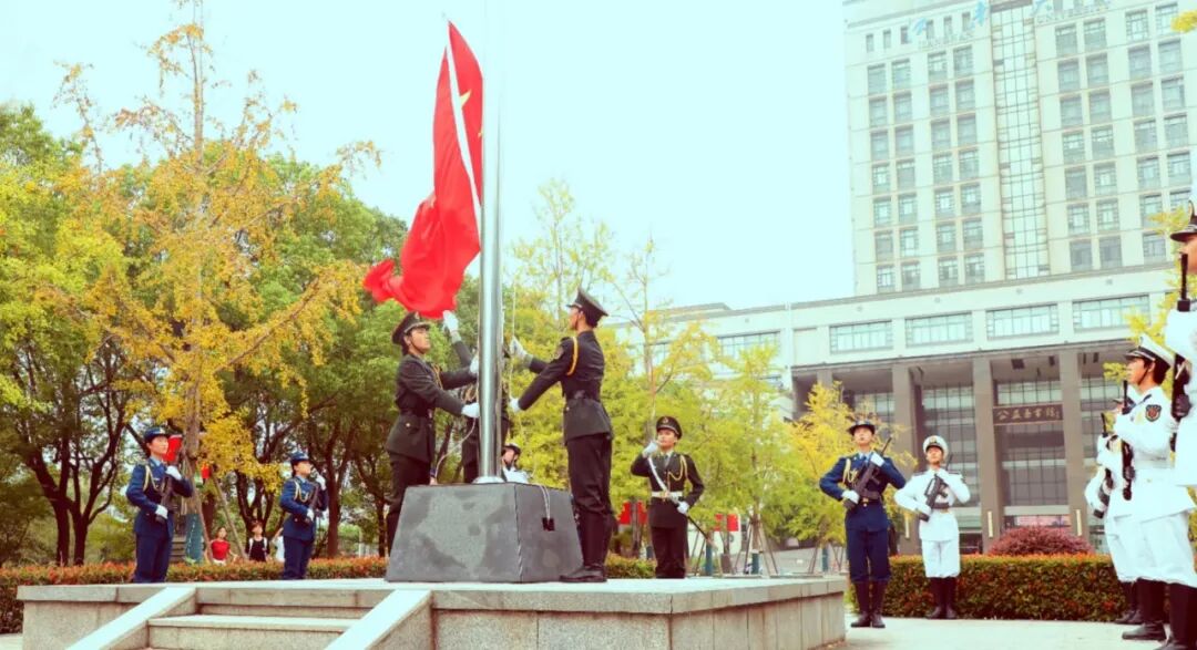 随着《义勇军进行曲》响起,升旗仪式正式开始。江南大学国旗护卫队队员身穿海陆空三军礼服,迈着铿锵的步伐,护卫着国旗走向升旗台。全场人员唱响国歌,向五星红旗行注目礼,见证着中华人民共和国的伟大成就和光辉历程。