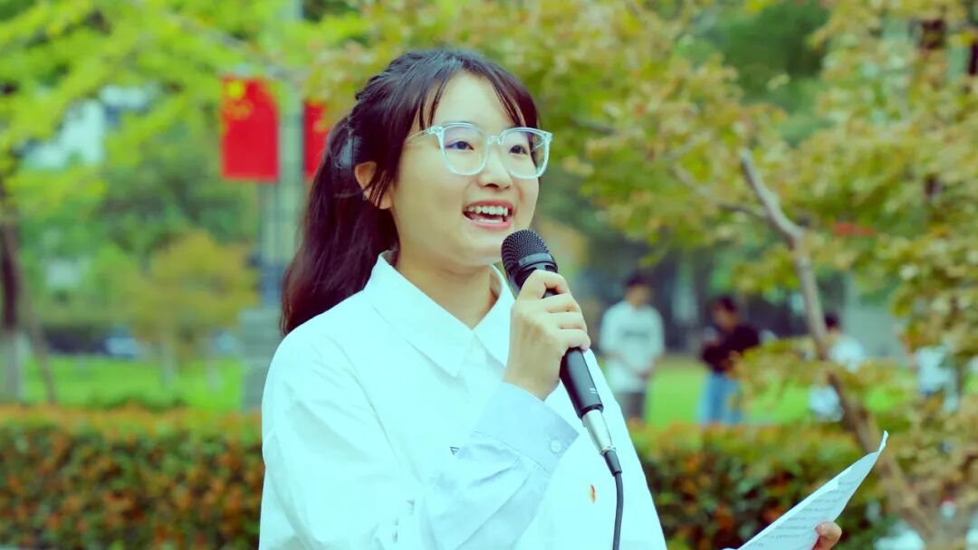 食品学院2024级本科生董欣然进行主题演讲《庆国之繁荣,承青年担当》。她表示青年的使命来源于历史的传承,来源于时代的召唤,作为新时代的新青年,要勇立时代潮头,用拼搏与汗水,书写壮美华章!
