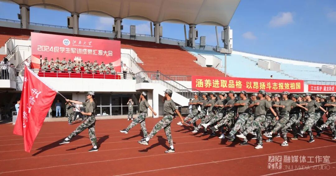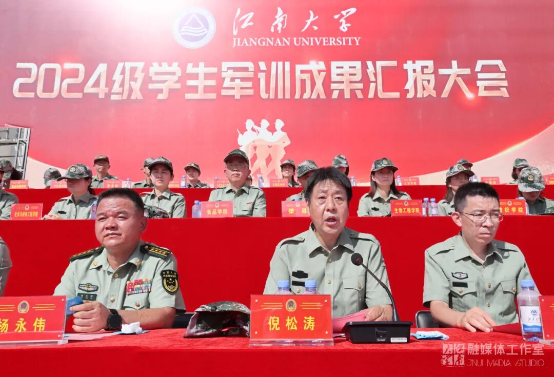 武警第二机动总队某支队大校政治委员杨永伟,江南大学党委常委、副校长倪松涛以及江南大学国防教育工作领导小组成员,各学院党委副书记,承训部队教官,带训辅导员,2024级全体参训学生共同参加了此次军训成果汇报大会。