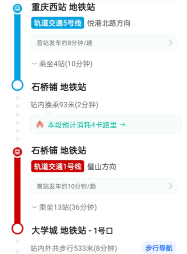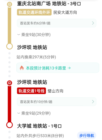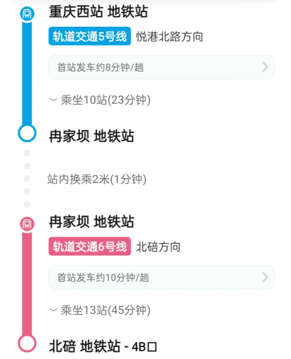 重庆北站——重庆师范大学大学城校区(全程1小时22分钟)
