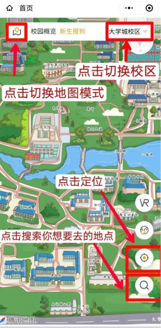 大学城校区开放东大门(1号门)、南门(3号门)、西南门(4号门)、北门(5 号门)、东北门(6 号门)作为新生入校口。
