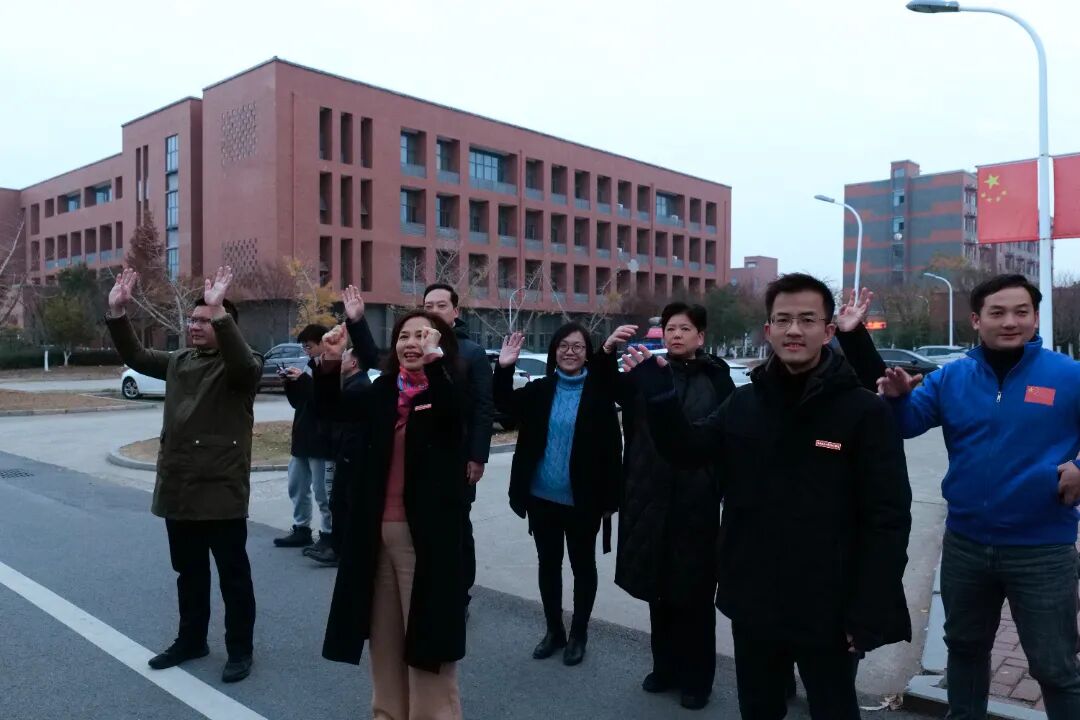 学院上海路校区,“暖心送考”服务也同时进行着。党委书记邓洪峰、院长助理郭林,学生工作部、上海路管理办公室等职能部门工作人员及部分学部负责人、毕业班辅导员来到学生宿舍17、18栋出发点,为即将赴考的学生加油鼓劲。
