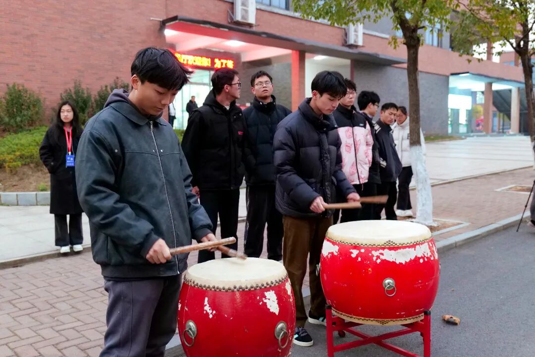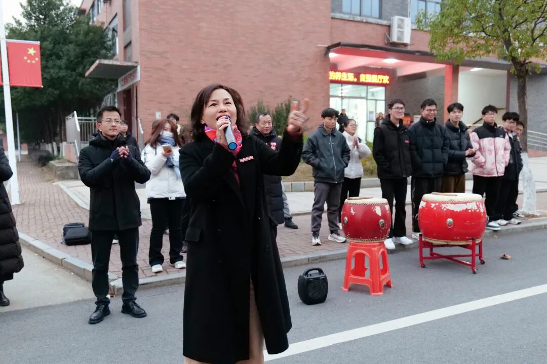 金光破云,行政楼前鼓声阵阵,院长李冰颖作动员讲话。温暖而又坚定的话语透过寒风温暖着莘莘学子,她表示,在这个奔赴理想的日子里,希望每一位考生都能放平心态,沉着应战,祝愿大家能在考试中发挥出最佳水平,马到成功,一战定“硕”。