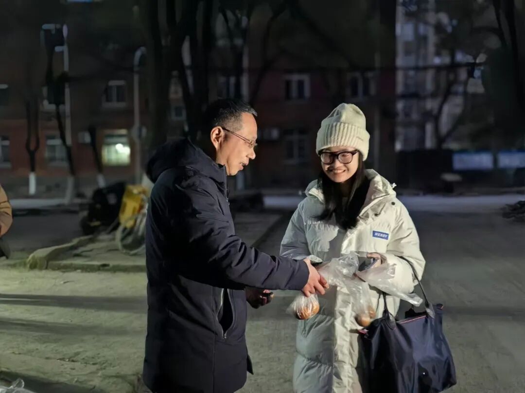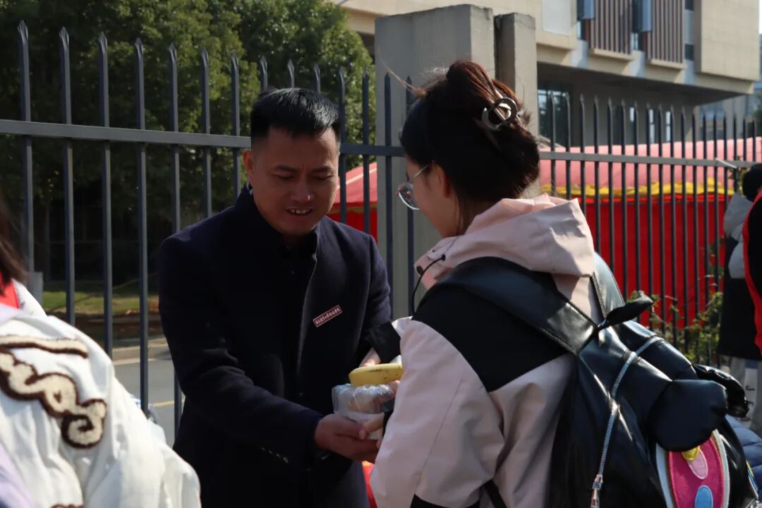 晨光熹微,暖心早餐就已准备妥当。邓洪峰将一份份热腾腾的餐点递到学生手中送上了诚挚祝福,希望大家怀揣梦想,全力以赴,勇往直前,一战成“硕”。