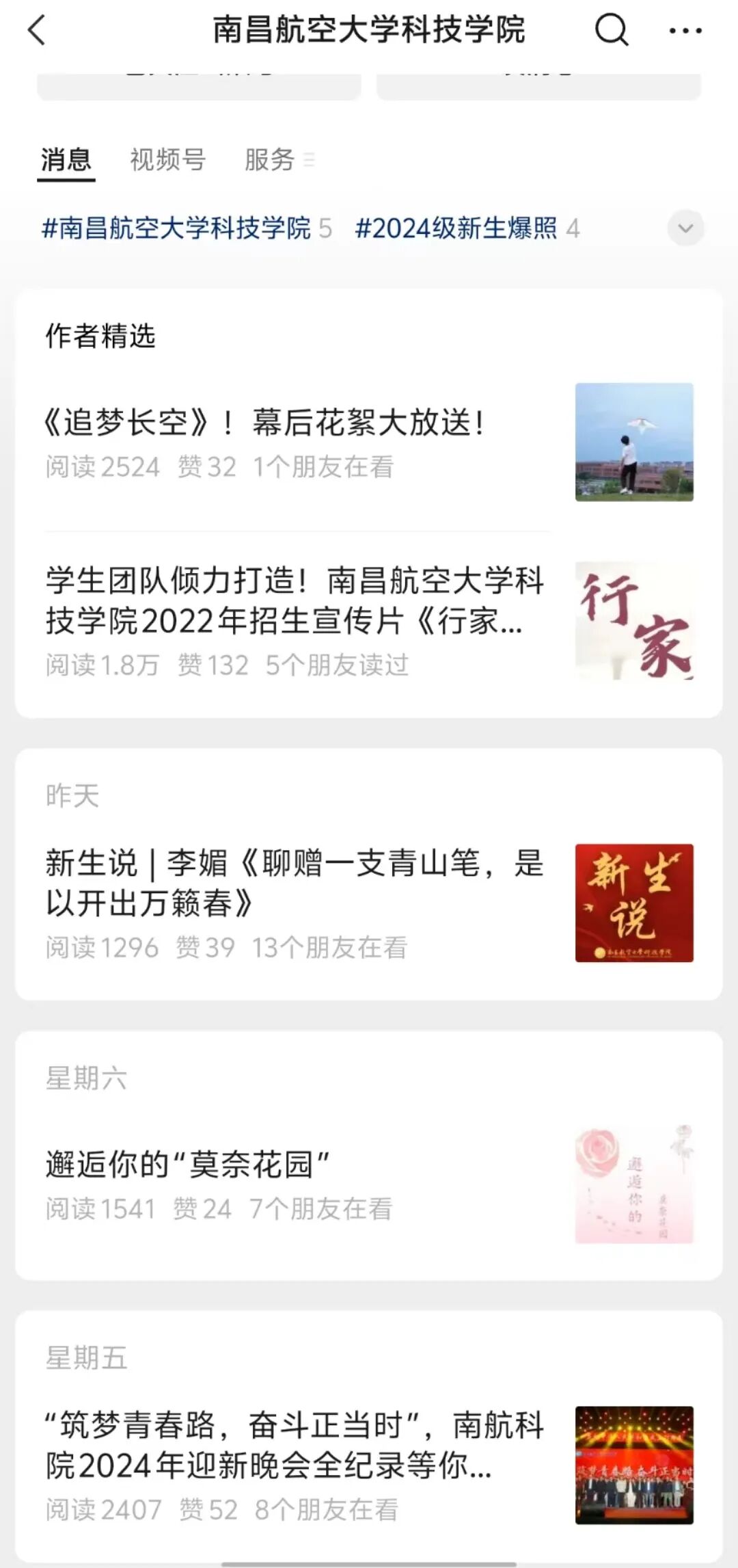 1.运营南昌航空大学科技学院官方抖音、官方视频号、B站;