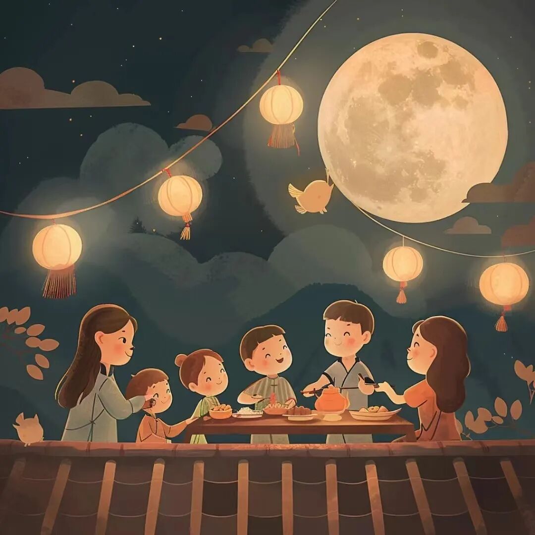 中秋节当晚,人们会相聚在户外,欣赏皎洁的明月。赏月的习俗寄托了人们对美好生活的向往和对亲人的思念。