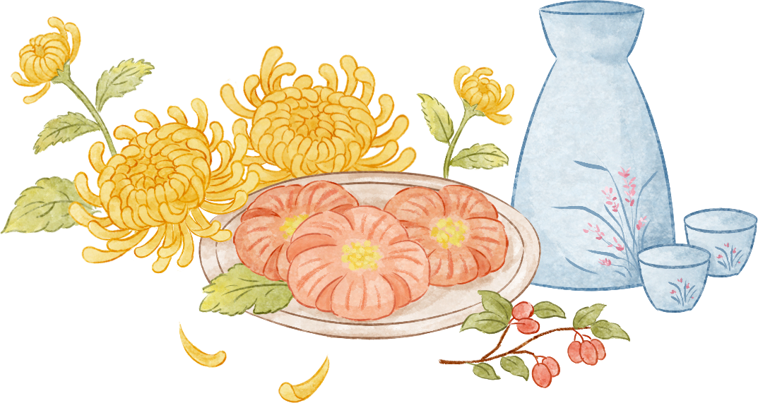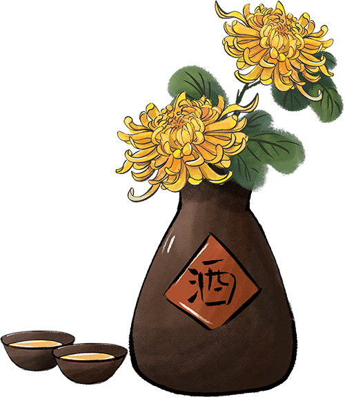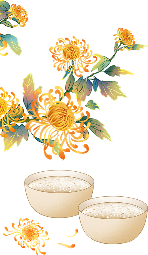 菊花有长寿的寓息,所以人们在重阳节这天有赏菊和喝菊花酒的习俗。