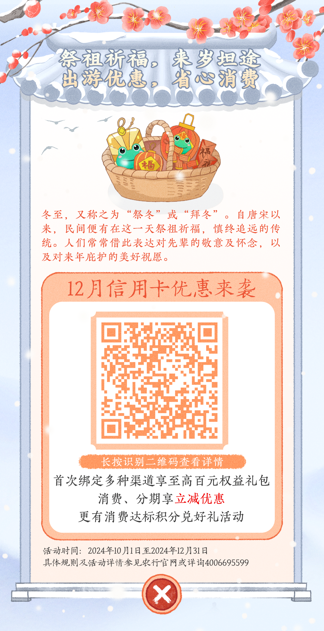 文章内容来源于公众号:农业银行信用卡至诚相伴,点此可查看原文,内容版权归相关企业所有,本网站仅供交流学习。若涉及版权问题或存在侵权情况,请及时与我们联系,我们将第一时间进行删除处理。