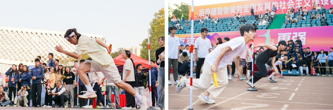 我主要参与跟拍运动员的工作,这需要我在现场保持注意力集中,并要善于观察、预判运动员的动作。很庆幸我们团队提前做好了沟通,大家各司其职,配合默契。今年是我第二次参与运动会的拍摄任务,很高兴能将自己的技能传授给学弟学妹,也在这次运动会中看到了自己的成长,能用自己的技能定格下运动健儿们的高光时刻,我感到无比满足。