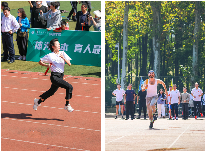 本次运动会由我们外国语学院协办,开幕式上展示了多种语言,为来自不同国家的学生提供了一个体验华师运动会氛围和中国文化的绝佳机会。今年,我们特别邀请了外教和外国留学生参与其中,促进了中外师生之间的深入交流。