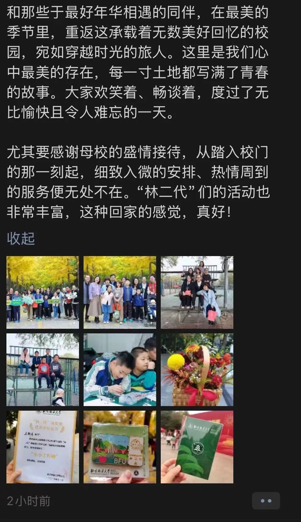 据悉,我校高度重视校友文化建设,将校友同心共赢聚力发展工程纳入学校十大建设工程进行统一部署。未来,校友会、教育基金会将继续积极联动校内相关部门,深化校庆月校友返校、“吾爱林”校友文化节等校友活动,创新活动形式、丰富活动内涵,不断密切校友与母校之间的联系,持续建设校园公益文化,广泛汇集资源、凝聚共识,为学校事业的高质量发展贡献力量。