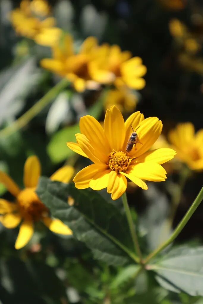 花间的蜜蜂和蝴蝶轻快地飞舞