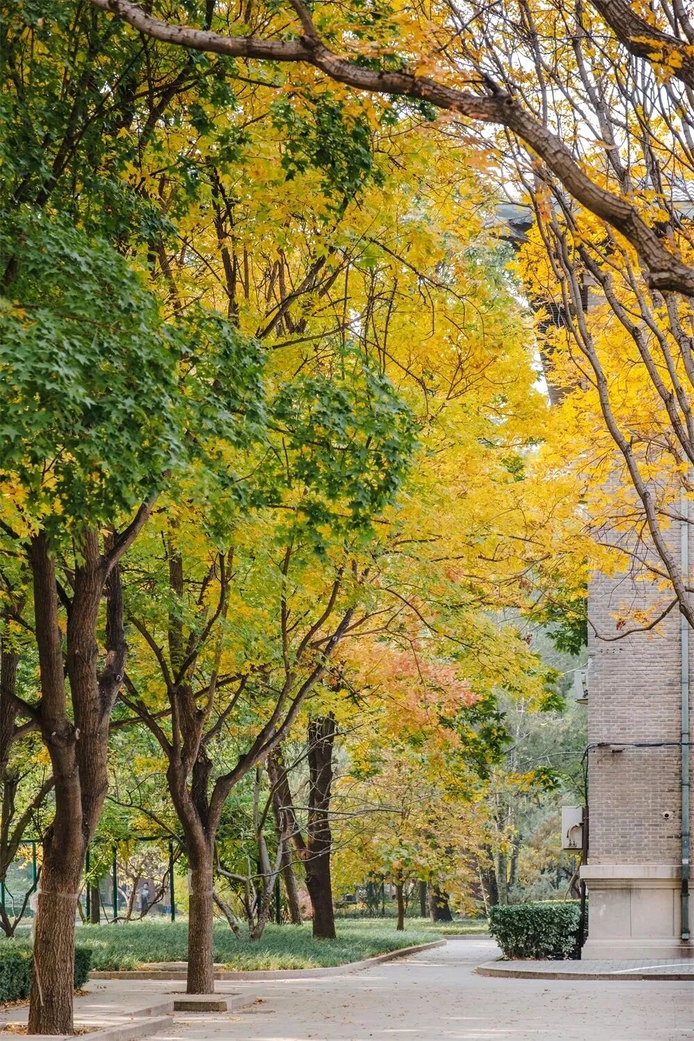 校园披上了“金秋外衣”