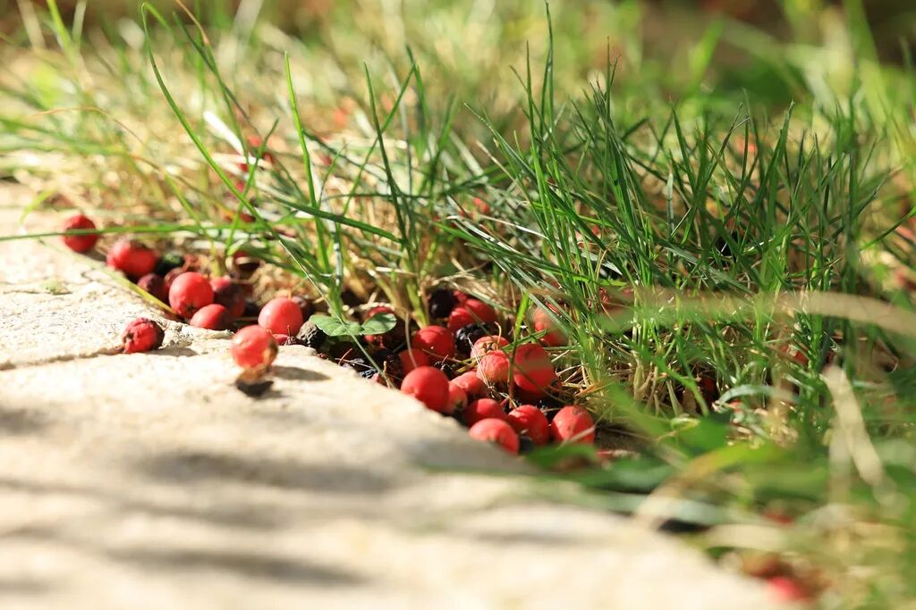 果实和落叶点缀在校园各处