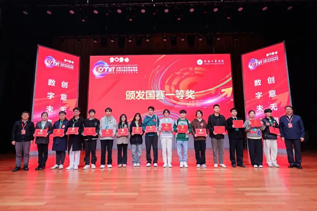 贺祖国老师及参赛学生代表黄嘉宇、王鹏翔、徐一笑、张力月