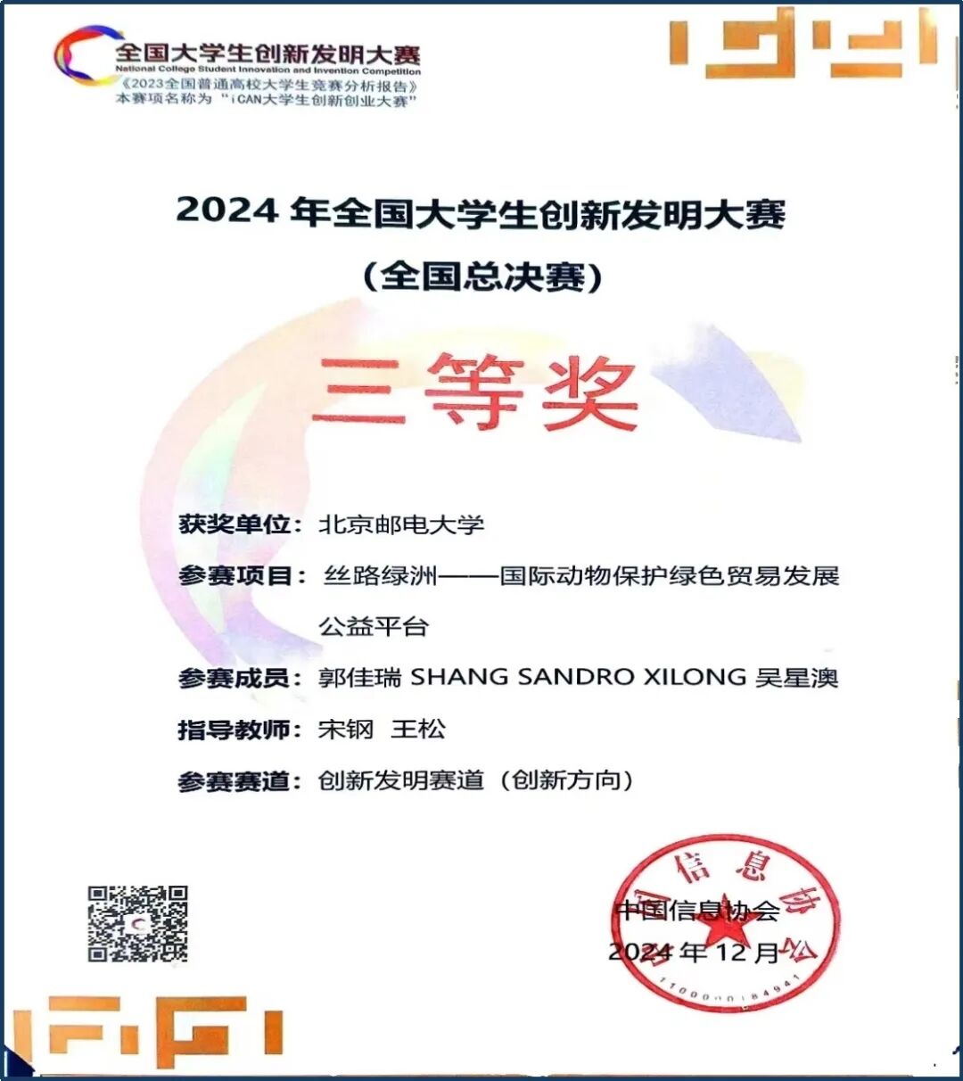 我校两支中外学生组成的团队在2024年全国大学生创新发明大赛全国总决赛中分别荣获二等奖和三等奖。