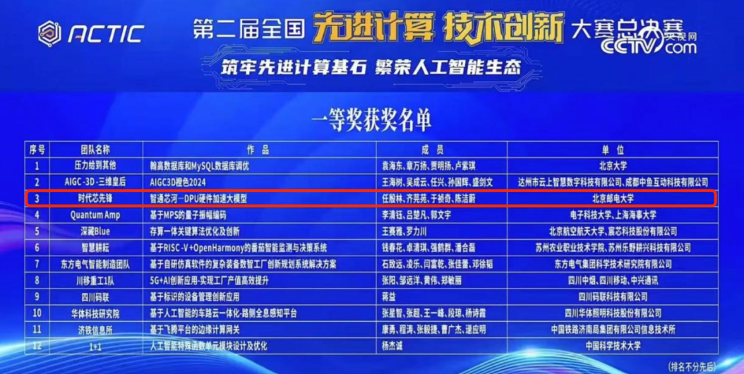 12月14日,第二届全国先进计算技术创新大赛总决赛在四川达州落幕,计算机学院(国家示范性软件学院)网络管理研究中心博士生团队凭借“智通芯河——DPU硬件加速大模型”项目荣获全国一等奖。项目聚焦数据中心和云计算领域,通过自主研发的数据处理单元(DPU)实现国产化替代,显著提升了大数据处理和机器学习模型训练推理的效率,赋能工业、电力等行业数智化发展,同时为学校在相关领域的研究和教学提供了崭新平台与发展机遇。