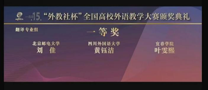 近日,第15届“外教社杯”全国高校外语教学大赛(外语类专业组)翻译专业组全国总决赛在上海举办,来自复旦大学、华东师范大学、北京邮电大学等全国初赛排名前10位的优秀选手同台竞技,云端直播超14万人次在线收看。人文学院刘佳老师荣获全国总决赛一等奖,取得了我校在该赛事历年来的最好成绩。