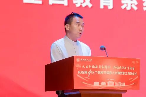 赵全军向全校教职工致以节日问候。围绕教育家精神内涵,他提出三点期望:一是要坚守育人初心,涵养高尚的师德师风。二是要融入学校发展,助力高水平大学建设。三是要坚持“四个面向”,提升教育强国建设效能。他强调,学校各项事业的再突破、再提升、再上新台阶,归根结底需要依靠全体教师,希望大家能大力弘扬和自觉践行教育家精神,为开启“教育强国,浙理何为”的新篇章而不懈奋斗。