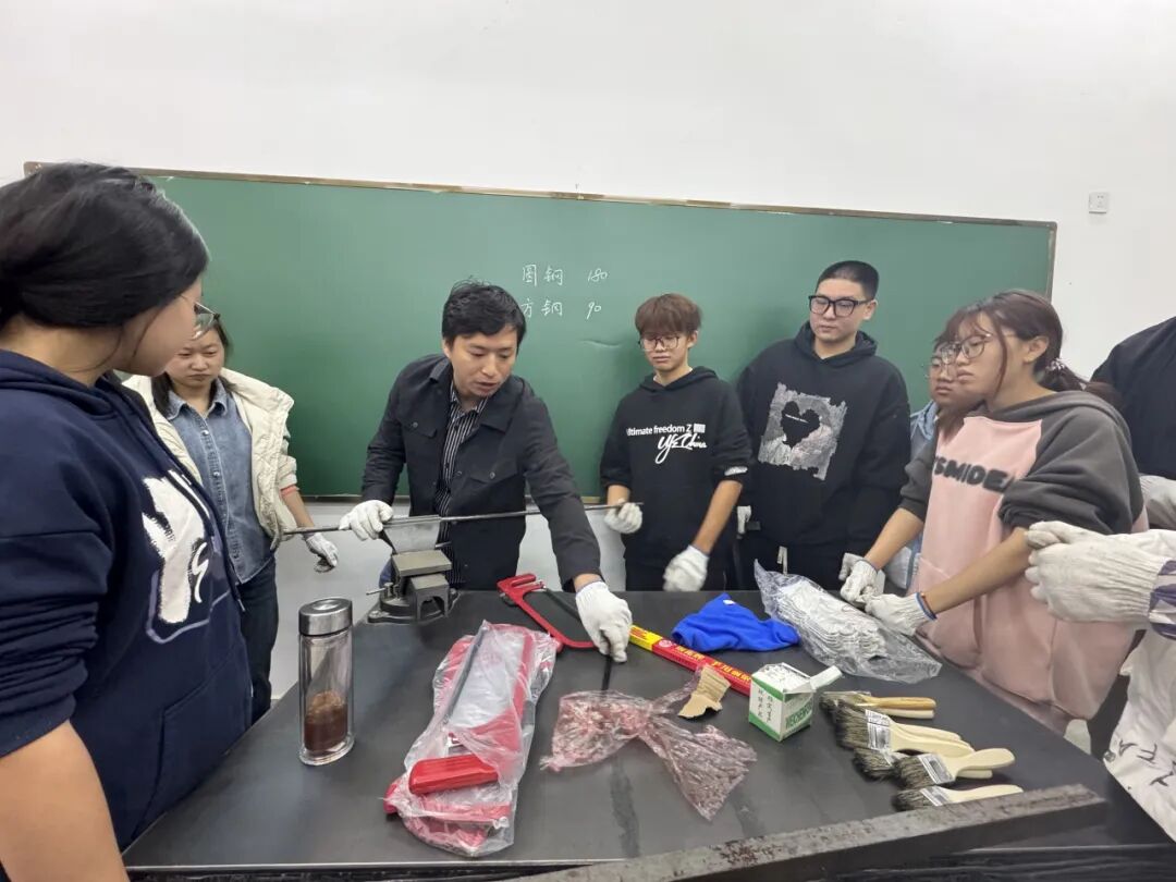 在实训课上,孙慧明老师首先向同学们介绍了机器人工程与金工实训这门课程之间的关联。他讲道:“机器人工程融合了机械、电子、控制、计算机等多学科知识,金工实训会让学生亲身经历从原材料到成品零件的制造过程,了解各种机械零件的加工方法和工艺要求,熟悉不同材料的加工性能。这有助于机器人工程专业学生在学习机器人机械结构设计时,不仅能更好地理解零件的制造可行性和设计合理性,还能从制造工艺的角度优化设计方案,提高机器人结构的可靠性和性能。”同学们听后相继点头,相互交流讨论,对老师的讲解表示认同和理解,分享彼此对机器人工程与金工实训关联的新认识。