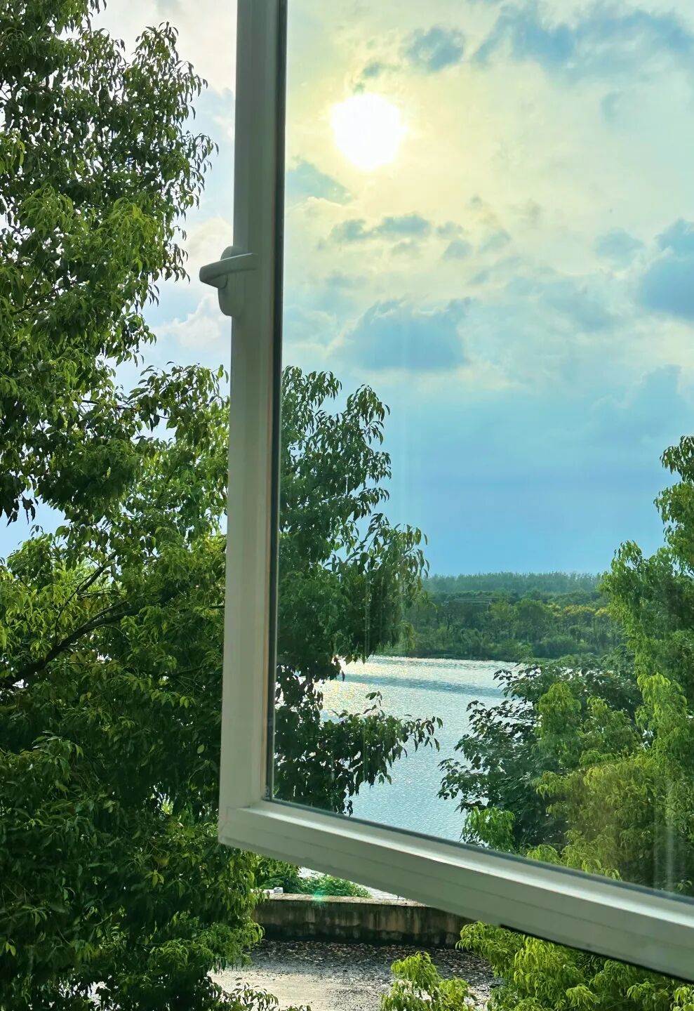 依依杨柳揽湖水作镜,照绿叶悠悠,