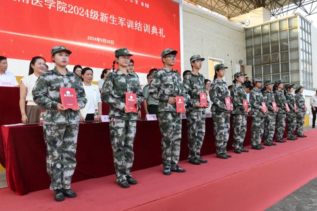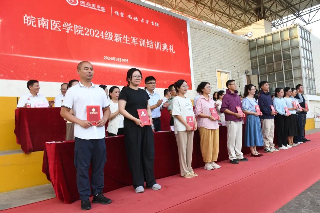 王保中宣读《关于表彰2024年军训工作先进连队和先进个人的决定》。学校领导分别为优秀学员、先进连队、优秀教官和优秀指导员颁发获奖证书。