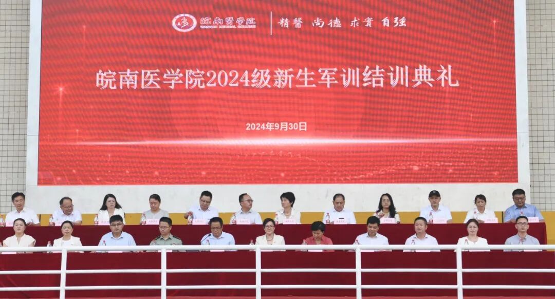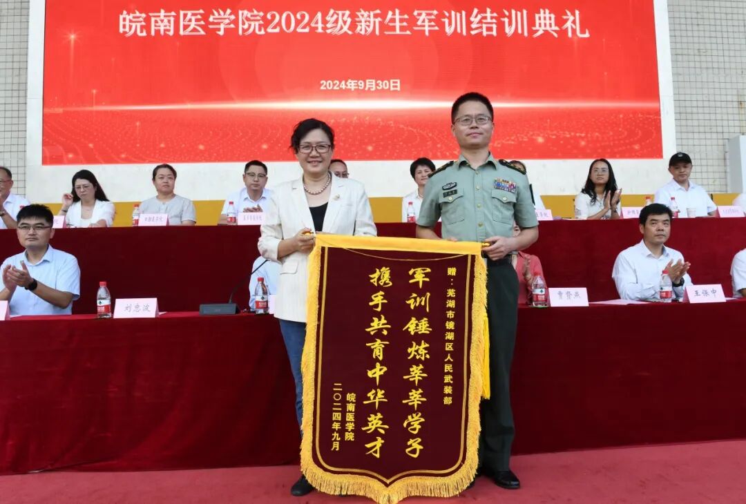 青春向党行,沙场秋点兵。9月30日下午,伴随着庄严的升旗仪式,我校2024级新生军训结训典礼在滨江校区(北区)田径场隆重举行。校党委书记夏劲松、党委副书记贾贤燕、副院长文育锋、纪委书记王保中,芜湖市镜湖区人武部部长刘忠波出席典礼活动。大会由文育锋主持。