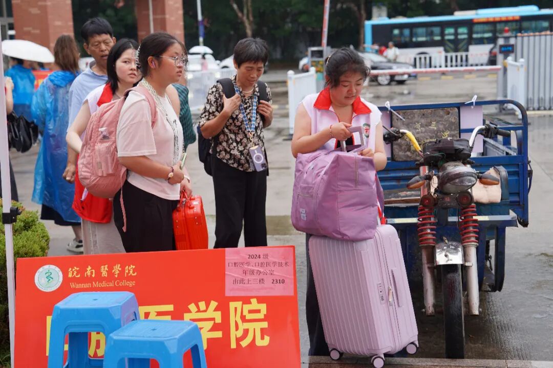 雨润初秋,学子齐聚。9月11日,天空虽不吝啬地洒下起了连绵的大雨,却丝毫未能阻挡皖南医学院2024级新同学们怀揣梦想、迈向未来的坚定步伐。