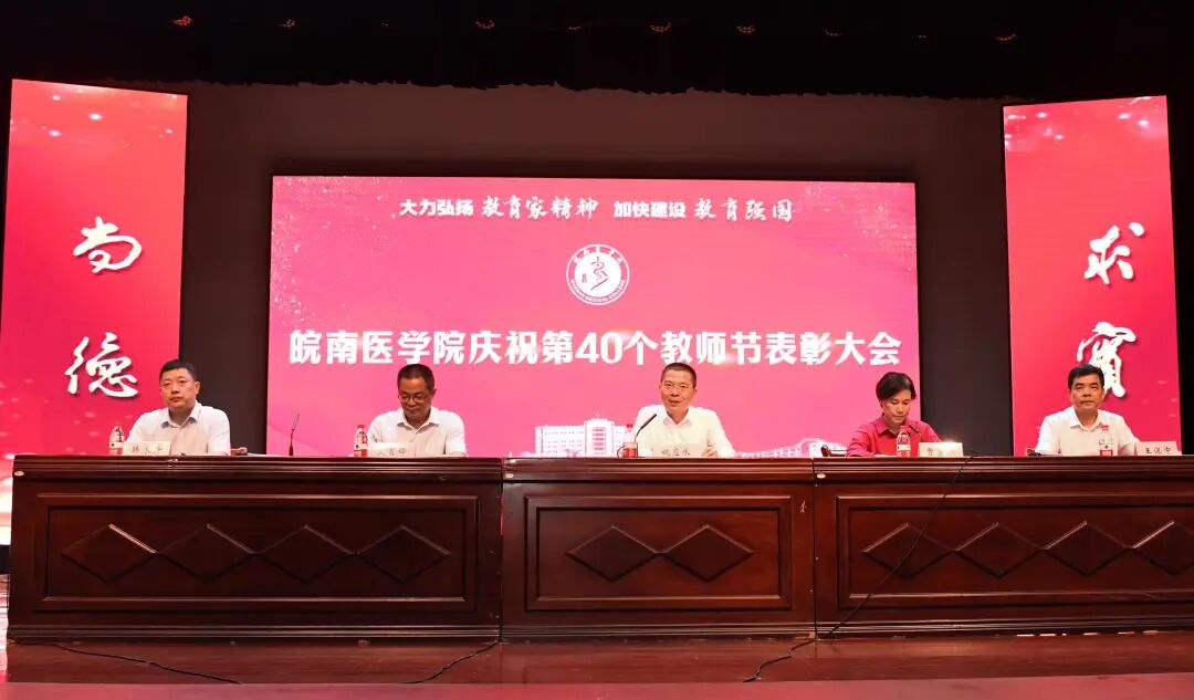 会上,副院长文育锋宣读《中共皖南医学院委员会关于表彰2024年先进集体、优秀教师、优秀教育工作者的决定》,副院长韩永升宣读近一年来获得省级以上荣誉称号、人才称号、重要竞赛获奖教师以及指导学生竞赛获奖教师名单,纪委书记、监察专员王保中宣读“30年教育工作者”名单。