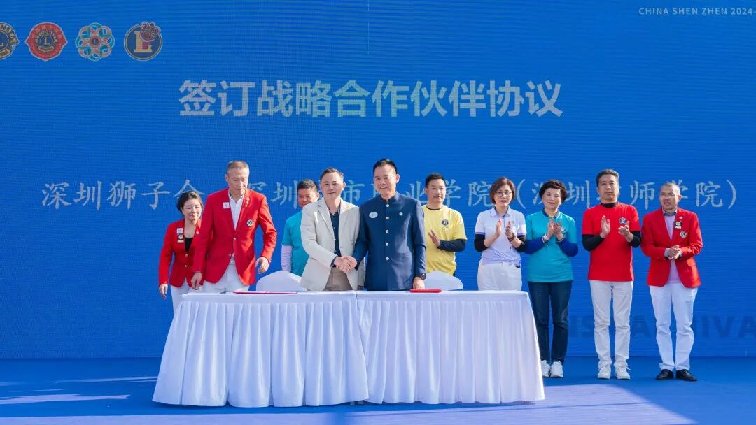 活动现场,学校创新创业学院刘滨院长代表学校与深圳狮子会轮值会长谭飞正式签署了《深圳城市职业学院(深圳技师学院)-深圳狮子会战略合作协议》。