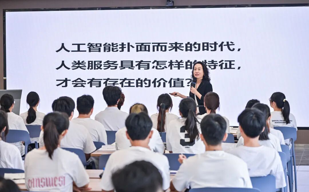 王晓望老师在点评中巧妙融合生、企双方观点,并将完成任务所需的知识点有效地与学生应用状况结合,引出关联知识点的再次学习与延伸,其中包括运用AI工具提升工作与生活的质量,提出观点“在人工智能时代,人类服务应具备哪些特征才有生存的价值”。
