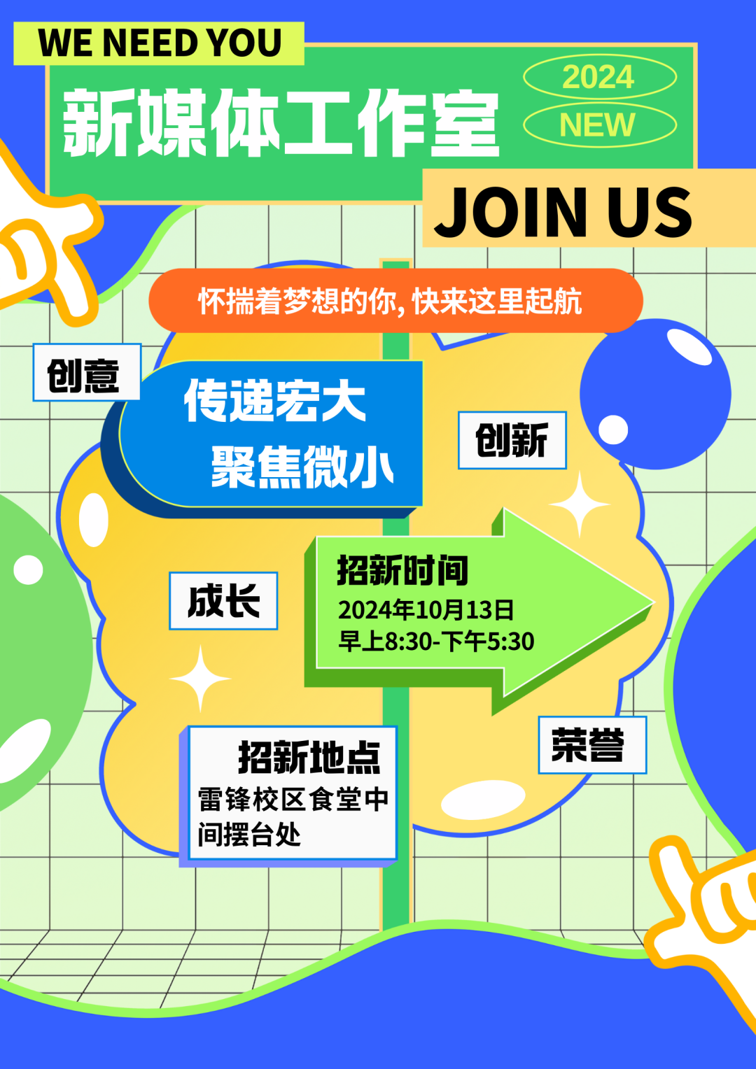 要求:创意无限,洞悉热点,思维独特,关注校园风向。