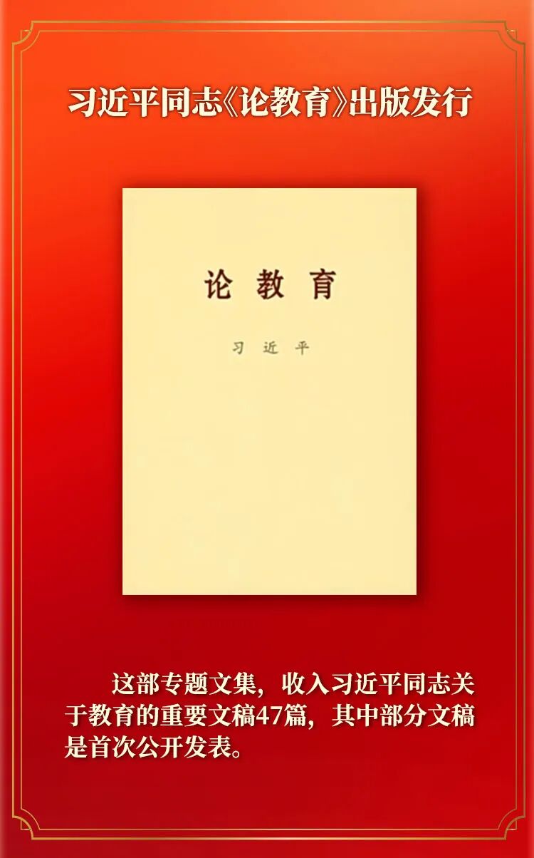 中共中央党史和文献研究院编辑的习近平同志《论教育》,近日由中央文献出版社出版,在全国发行。