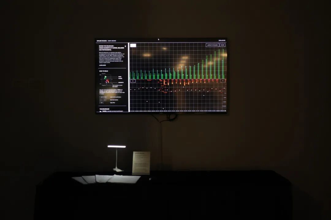 平台基于交互式站点,使用视觉与声音作为媒介,提供一种对真实数据——论文、新闻与事件——进行探索的渠道。作品支持下探查看关键数字背后的故事,并对散落于互联网中的不当使用报告进行了分类编目。在探索中,观众可以体验正面/中性信息与负面事件之间的曝光度差异,新闻报道与事件实际规模之间的隐形差距,以及物质不当使用的受害范围如何逐步从动物扩散至人类。