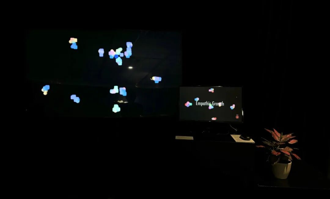 《共感生长》是一件跨物种互动艺术装置,探索植物感知的超人类视角。基于Jakob von Uexküll的“环境”(Umwelt)概念,该装置将植物视为具有不同于人类,感知世界的积极参与者。通过在共享环境中可视化人类和植物的生物信号,《共感生长》创造了一个共享感知的空间,鼓励参与者反思植物的能动性,促进物种之间的共感。