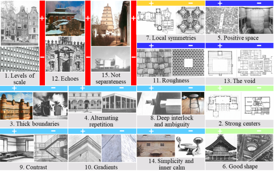 活力结构学的核心内容包括子结构的识别与设计(S)以及其层次性的构建(H)。具体而言,在建筑和城市空间设计中,子结构可以是房间、楼层、建筑元素(如窗户、柱子、天花板等)或者更大尺度上的街区和公园等;具体开展空间设计时,应充分考虑每个子结构的形态、尺度、材料和颜色等,确保它们各自能够展现独特的特征,同时与整体空间和谐统一。