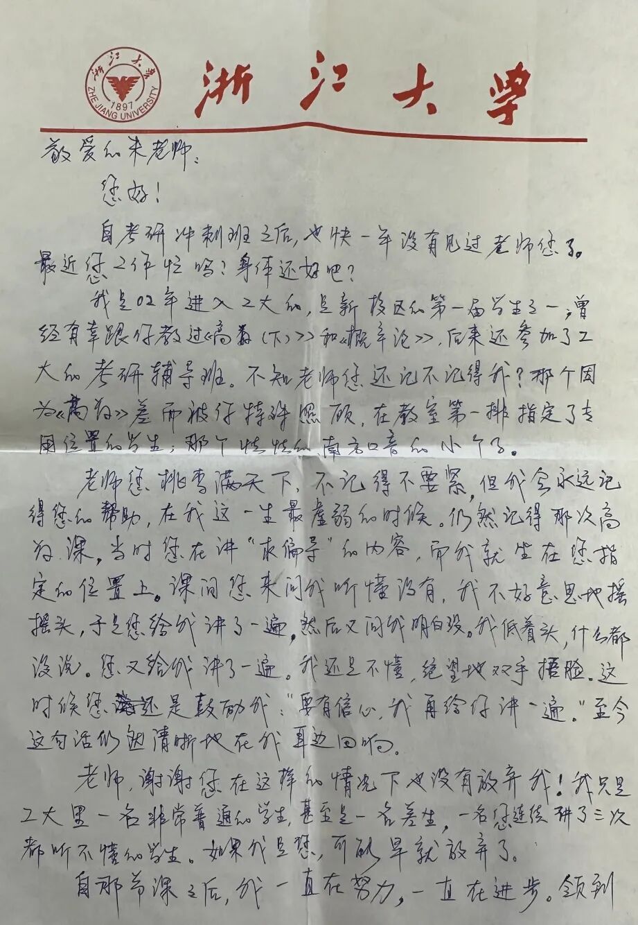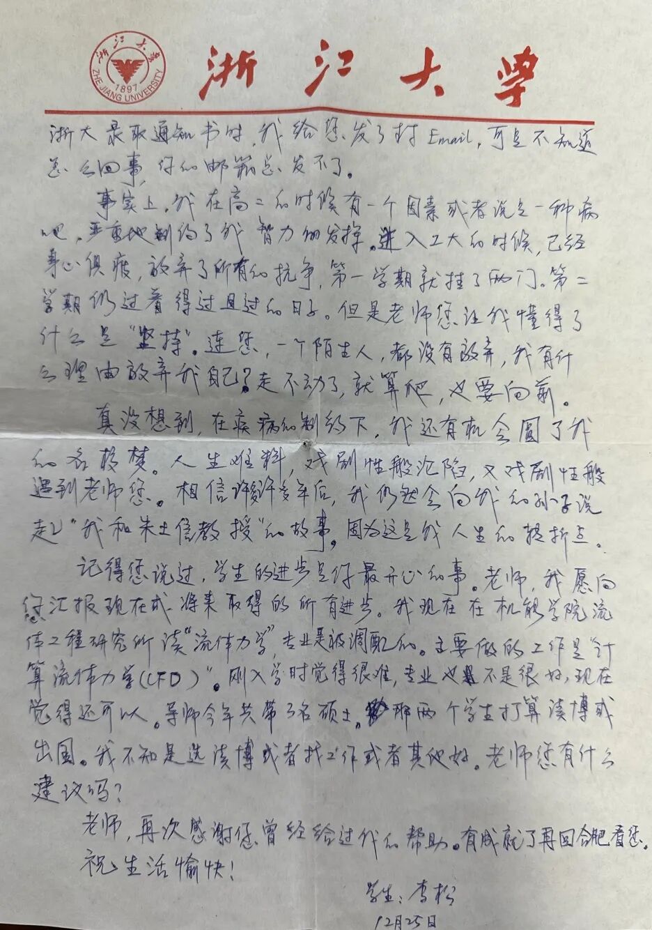 在朱士信的办公桌里,一直珍藏着一封信。这是二十多年前,合工大翡翠校区第一届学生李松在考入浙江大学研究生后写给他的信。在这封近千言的信中,李松深情回顾了本科期间,朱士信对他的关爱和指导。一次课上,李松对“求偏导”的内容没弄懂。朱士信利用课间休息的时间,一连为其讲解了三遍。看着李松仍然似懂非懂的样子,朱士信让李松以后每节课都坐在第一排的座位上,便于及时掌握他的学习情况。这一切,给了李松莫大的鼓舞。此后,他奋发努力,凭借自己的优异成绩考入了浙江大学研究生。