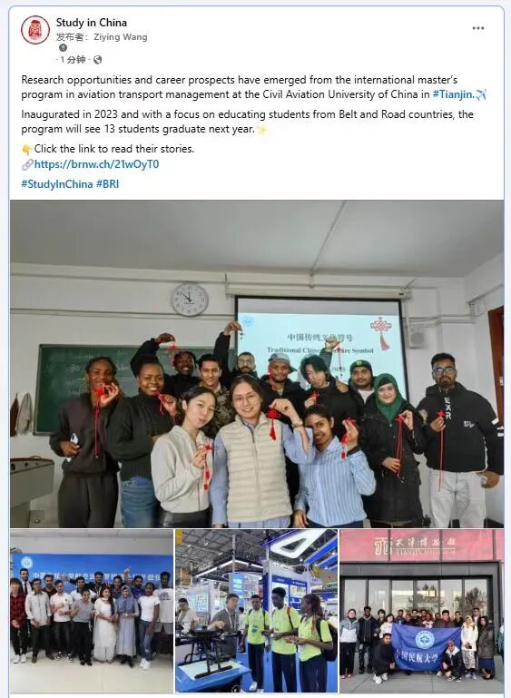 据悉,中国民航局于2022年发布了《“十四五”时期推进“空中丝绸之路”建设高质量发展实施方案》,其中明确提出,要拓宽人文交流领域,开展面向共建国家的民航专业培训交流,促进“心联通”取得进展。此硕士国际班项目正是中国民航大学为落实这一目标而采取的具体举措,为“一带一路”共建国的航空业发展注入了新动能。