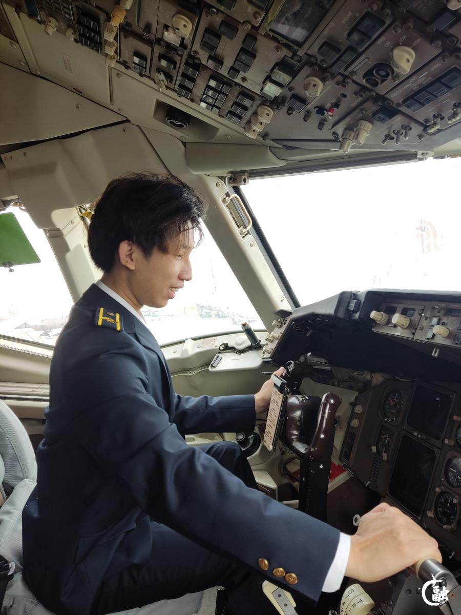 Vu Dang Khoa, a student from Vietnam, test drives an airplane. [Photo provided to chinadaily.com.cn]